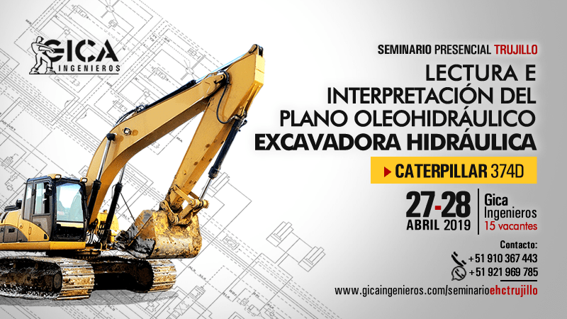 Gica Ingenieros se complace en presentar el Seminario Presencial Lectura e Interpretación del Plano Oleohidráulico de la Excavadora Hidráulica CAT 374D; que se desarrollará el día sábado 27 y domingo 28 de abril de 2019 en la oficina de Gica Ingenieros de la ciudad de Trujillo - Perú