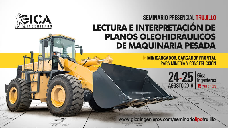 Gica Ingenieros se complace en presentar el Seminario Presencial Lectura e Interpretación de Planos Oleohidráulicos de Maquinaria Pesada; que se desarrollará el día sábado 24 y domingo 25 de agosto de 2019 en la oficina de Gica Ingenieros de la ciudad de Trujillo - Perú